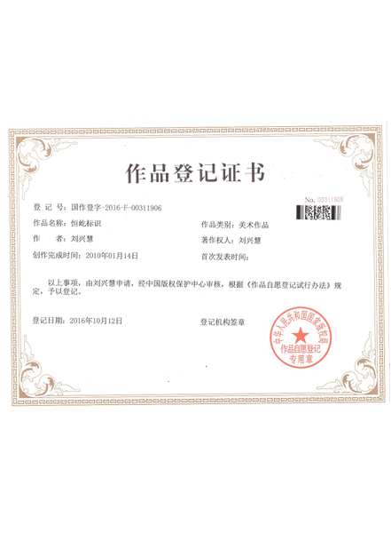 作品登記證書